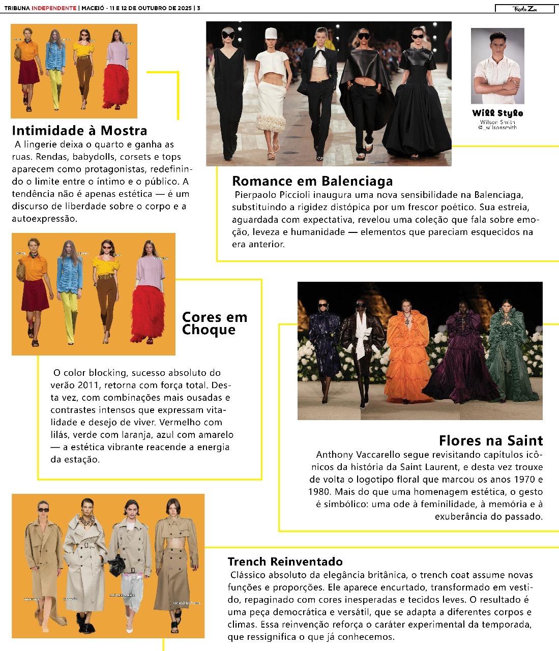 A lingerie deixa o quarto e ganha as ruas. Rendas, babydolls, corsets e tops aparecem como protagonistas, redefinindo o limite entre o íntimo e o público. A tendência não é apenas estética — é um discurso de liberdade sobre o corpo e a autoexpressão.